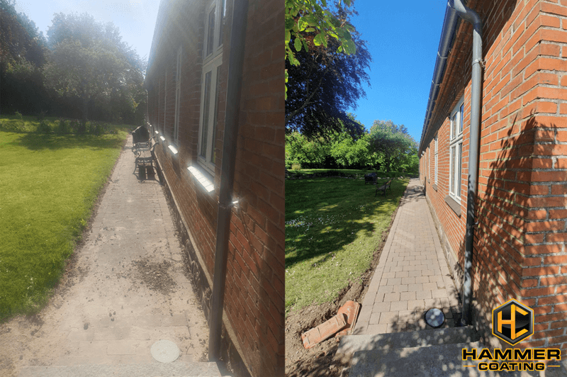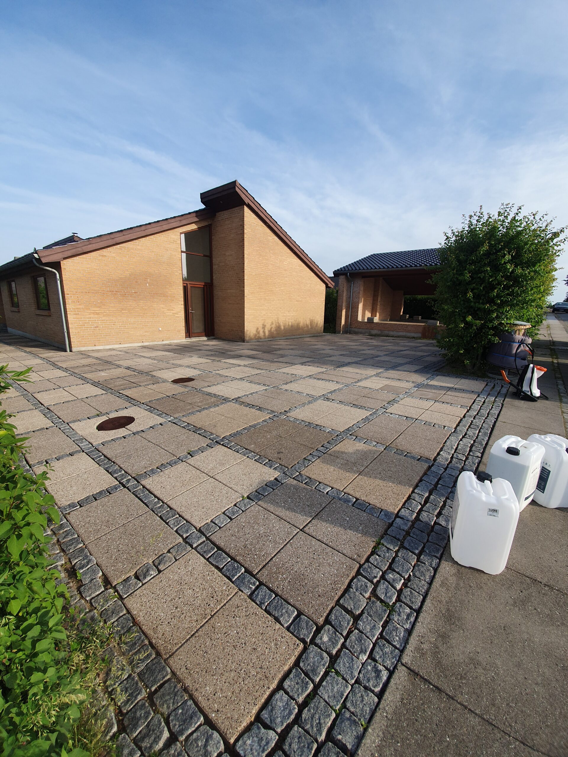 Vores fliserens sikrer et rent, jævnt og skridsikkert underlag, som både forbedrer udseendet og forlænger flisernes levetid. Efter rensning kan vi afslutte med imprægnering, der beskytter mod ny begroning og gør fliserne nemmere at vedligeholde.